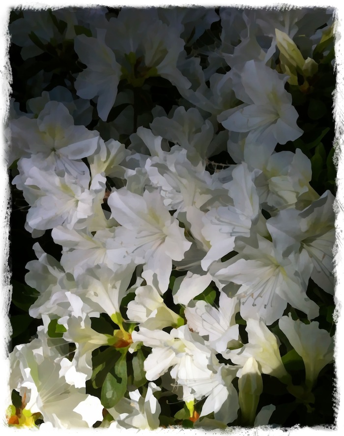 White, Cream And Green: A Tumble Of Azaleas iPhone 4 / Camera+ / iPhoto For iOS / PhotoForge border Related