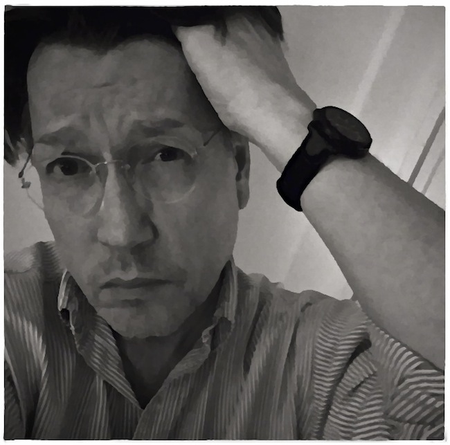 Unintended Self-Portrait: BW Setup, Mid-Ponder iPhone 4 / Hueless / iPhoto For iOS / PhotoToaster / Flare Related