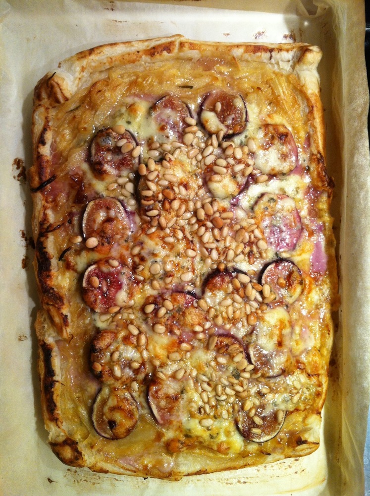 Fig tart with caramelized onions, rosemary and Stilton (drizzled with honey). Long day; suddenly much better evening.